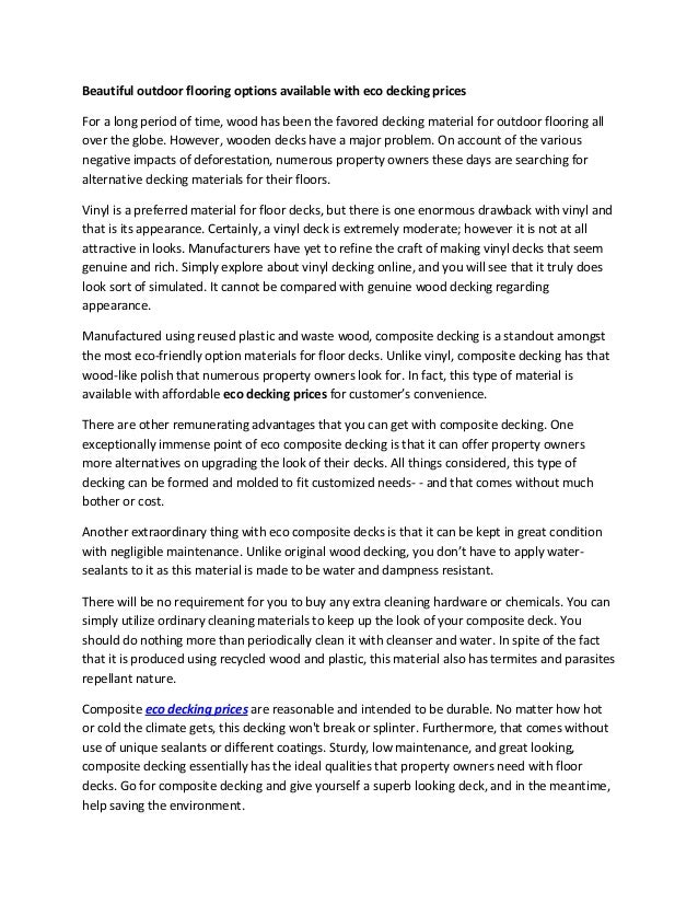 Durable, recycled & in stock! Ebay.com has been visited by 1m+ users in the past month What is the best composite material for decks? Nexaninc.com has been visited by 10k+ users in the past month What is the best outdoor flooring for a deck?