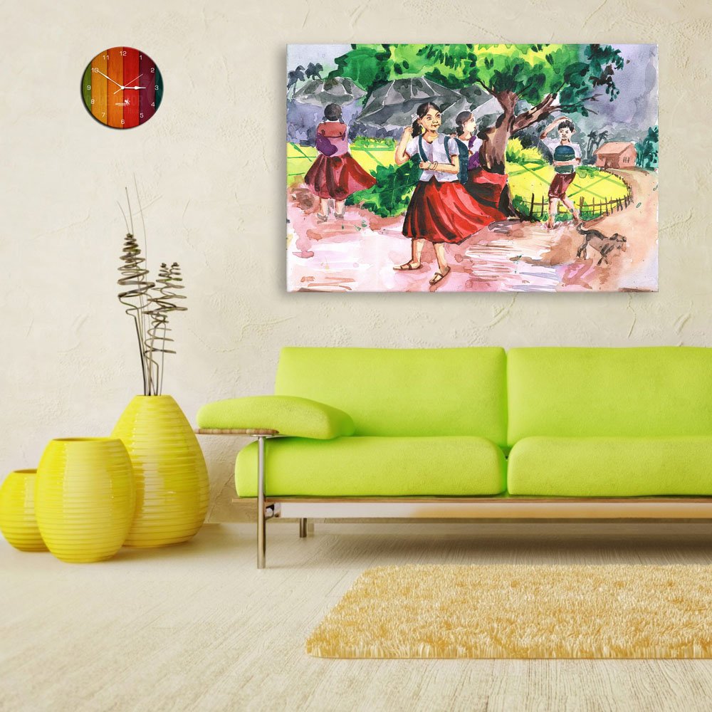 Inephos Framed Canvas Painting Indian Village Tribal Art